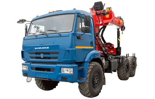 Мощный седельный тягач КамАЗ 43118 с КМУ предназначен для транспортировки автопоезда массой до 120 т. Использование подобной спецтехники позволяет перевозить длинномерные грузы, тяжелые стройматериалы, пищевые жидкости.