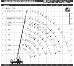 | Описание комплектации а/м | г/п 32 т, длина стрелы 31 м, противовес |