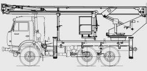 Автовышка изготавливается в климатическом исполнении У для работы при температурах окружающей среды от -40° до +40° и скорости ветра не более 10 м/с. Возможные дополнительные опции: розетка в люльке для подачи напряжения 220В, инструментальный ящик, бортовая платформа, проблесковый маячок, окрас оборудования по желанию заказчика, установка поворотной люльки +/- 45°.